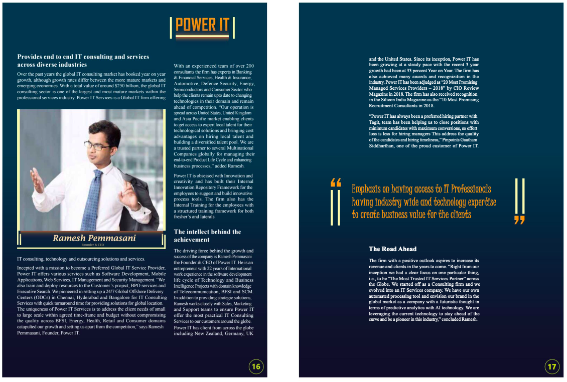 Power IT Services from the day of its establishment in 2011, is endowing clients, enterprises with its innovative IT Solutions integrating our skills with our client’s needs and we achieve the right results.